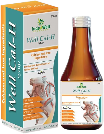Wellcal-H Syrup is an Ayurvedic bone and strength-support tonic enriched with natural calcium-boosting herbs. It contains Amla, Jivanti, Moringa (Sigru), Harad, and Bahera, which help support strong bones, improve calcium absorption, and enhance overall vitality. The tonic also includes Hadjod (Asthisanharak), traditionally known for improving bone healing and strengthening joints. Ideal for adults with weak bones, low calcium, fatigue, or general weakness. It supports bone density, joint movement, and overall wellness naturally without synthetic calcium. Safe for long-term daily use.